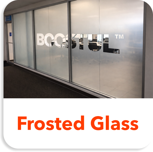 Frosted glass graphics use window etching film to add privacy, branding, and wayfinding while preserving light and openness.