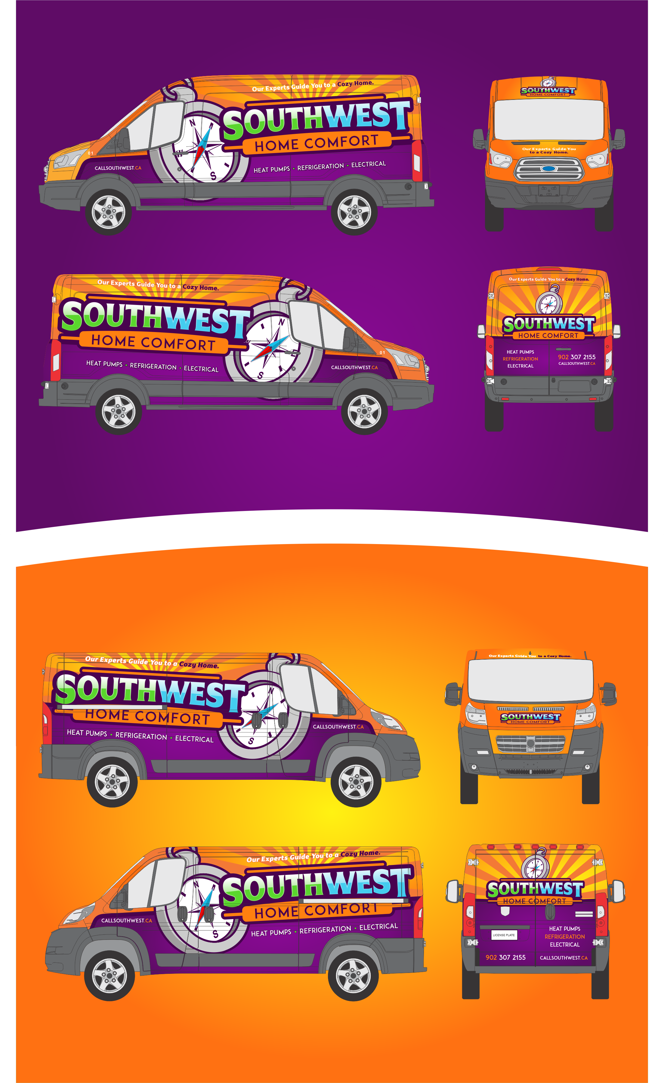 Loud, Attention-Grabbing Vehicle Wraps: The final vehicle wrap design embraced a bold, dynamic background in purple and orange, ensuring maximum visibility on the road. The goal was clear: turn every service vehicle into a mobile billboard that attracts attention and reinforces brand recall wherever it goes.