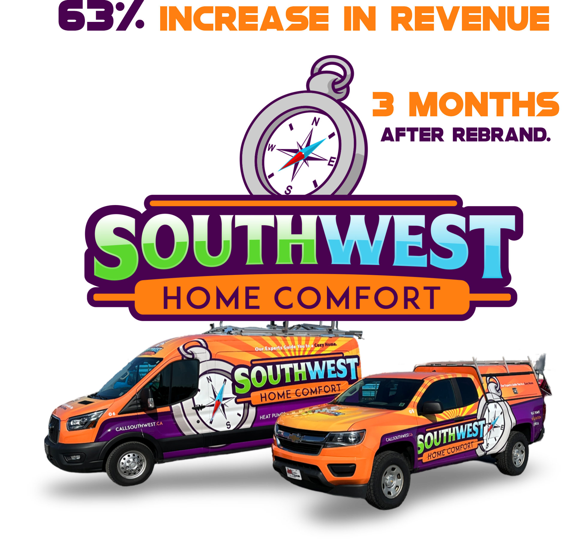 The results were immediate and staggering. Within just three months of launching the rebrand, Southwest Home Comfort increased revenue by 63%—without spending anything on additional marketing.